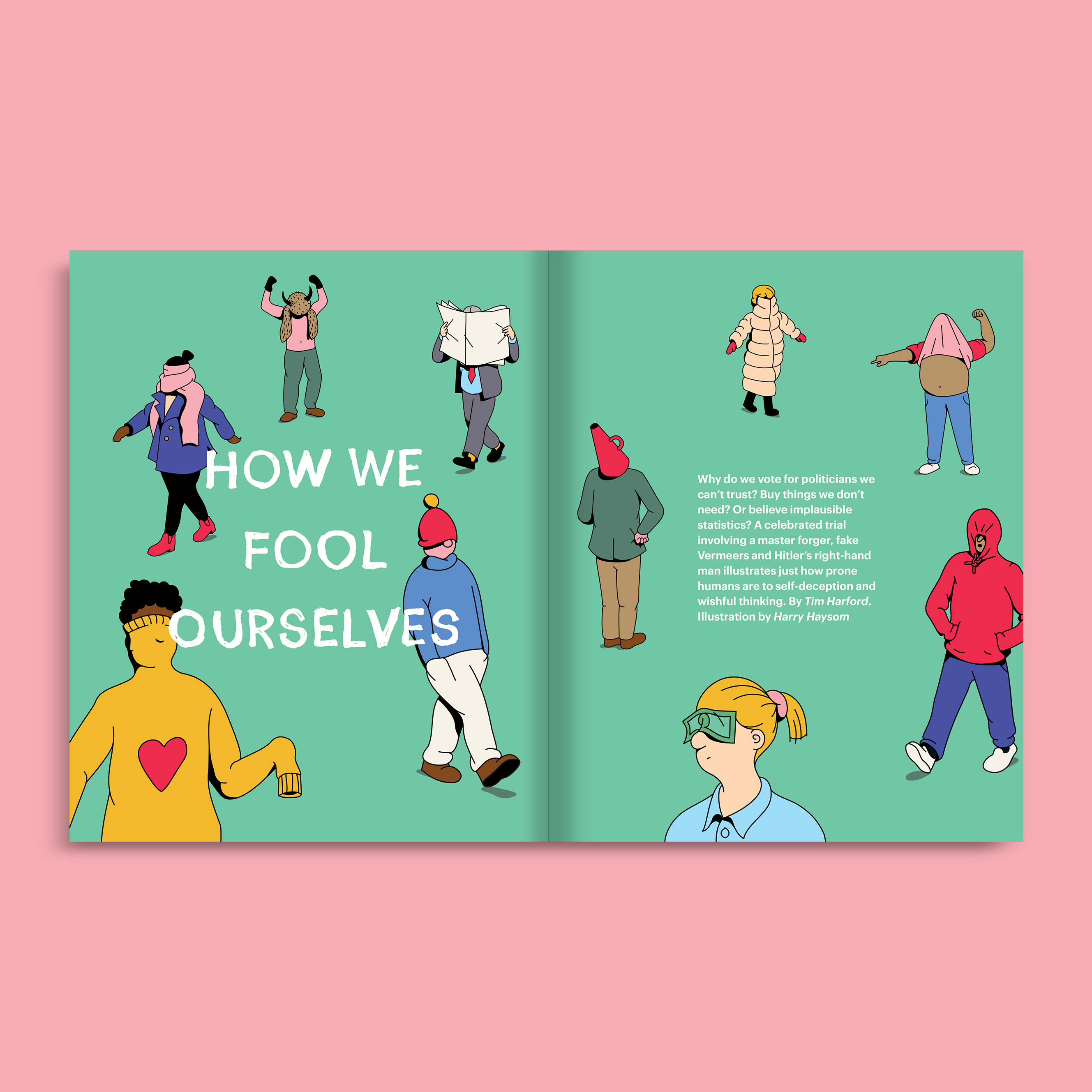 FT Weekend MagazineArt Direction: Shannon Gibson Cover design and illustrations for a piece by Tim Harford, on our propensity for self-deception.